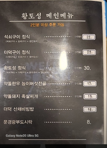 문경 지역 특산 이미지가 강한 약돌돼지를 활용한 메뉴로, 구이류를 선호하는 손님들이 함께 주문하기 좋다.