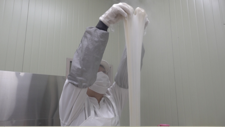 이곳의 하루는 새벽 3시 30분에 시작된다. 떡 맛을 좌우하는 핵심 재료는 갓 도정한 영주산 찹쌀. 하루 사용량만 무려 300kg에 달한다. 충분히 불린 찹쌀은 스팀 펀칭기에 넣어 치대는데, 완성된 반죽은 모차렐라 치즈처럼 길게 늘어나는 탄력이 특징이다. 펀칭기에서 나온 반죽은 약 100도에 가까워 맨손으로 다루기 어려울 정도지만, 쫄깃함을 살리기 위해 직접 뒤집는 과정을 거친다.