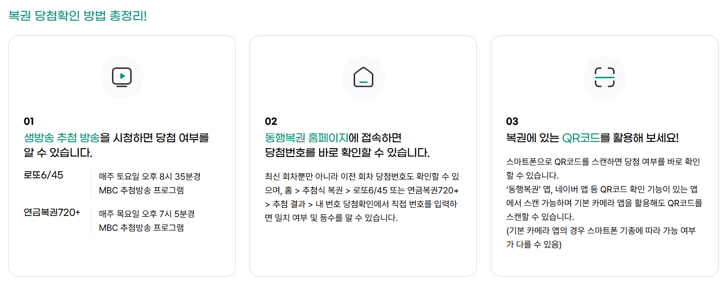 - 당첨번호 확인: 동행복권 홈페이지·모바일에서 즉시 확인