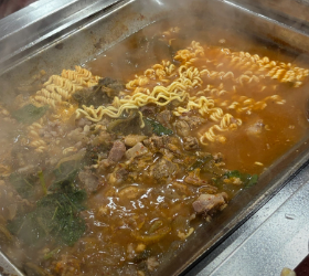 식사의 마무리 메뉴로 많이 선택되는 메뉴입니다. 큼직한 양고기 뼈와 고기가 들어간 전골로 깊고 고소한 국물 맛이 특징입니다. 라면이나 밥을 추가해 먹으면 더욱 든든한 식사가 됩니다.
