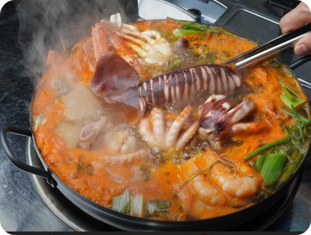 특히 통오징어, 낙지, 순살 아구, 오만둥이, 이리 같은 재료가 푸짐하게 들어가 해물의 다양성과 비주얼을 동시에 살리고, 마지막에는 치즈볶음밥으로 마무리할 수 있어 식사의 흐름이 자연스럽게 이어지는 점도 강점으로 소개됐다.