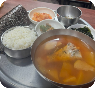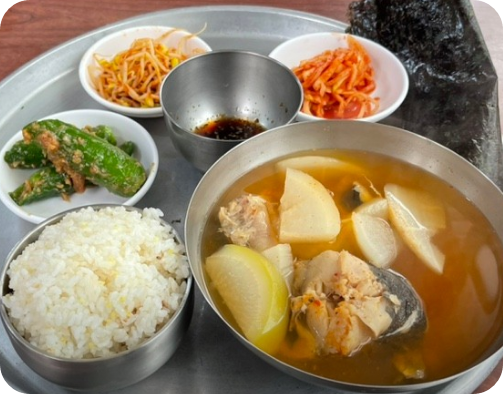 이 식당의 대표 메뉴이자 방송의 핵심 메뉴. 시원한 동탯국과 함께 밥을 곁들여 먹는 정식 메뉴로, 부담 없는 가격에 든든하게 한 끼를 해결할 수 있는 구성이 특징이다. 속을 편안하게 풀어주는 국물 요리를 찾는 사람들에게 잘 어울린다.