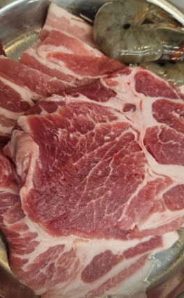 돼지고기는 선진포크 한돈(암퇘지)만을 사용해 기름은 고소하고 살코기는 담백한 맛을 유지합니다. 여기에 항정살, 목살, 꽃살, 갈비살, 우삼겹까지 다양한 부위를 취향에 맞게 즐길 수 있습니다.
