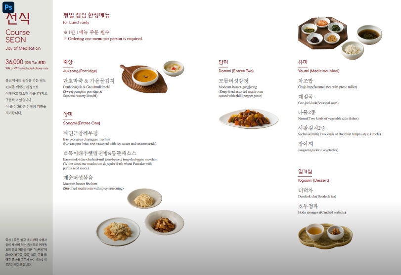 ① 선식 (평일 점심 한정) – 36,000원