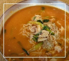 담백하면서도 얼큰한 국물이 특징인 메뉴로, 생선 특유의 감칠맛이 살아있다. 국수와 함께 생선살을 곁들여 먹을 수 있어 식감이 풍부하다.