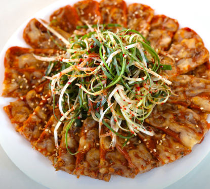 이곳의 대표 메뉴. 신선한 닭과 비법 소스를 사용해 솥뚜껑 위에서 끓여 먹는 스타일의 닭볶음탕이다. 부드러운 닭고기와 자극적이지 않은 깊은 양념 맛이 특징이다.