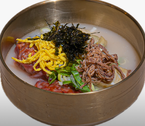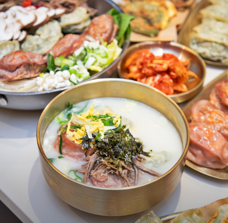 새콤한 육수와 쫄깃한 면발로 만두전골과 잘 어울리는 사이드 메뉴