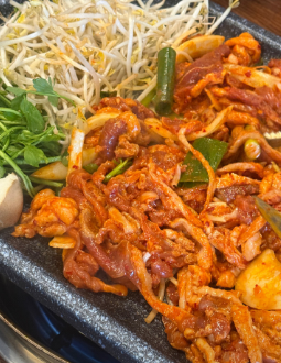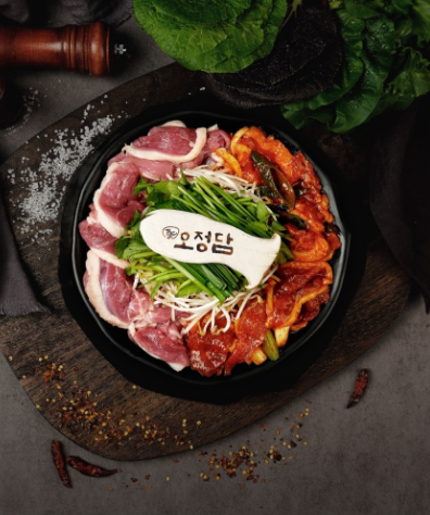 오리볶음탕은 매콤한 특제 양념에 오리고기와 감자, 채소를 함께 졸여 깊은 맛을 냅니다. 마무리로 칼국수 사리를 추가하면 국물의 풍미를 끝까지 즐길 수 있습니다.