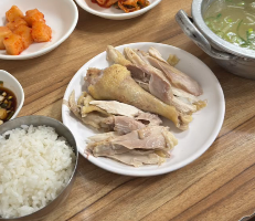 설명: 노계를 통째로 푹 삶아낸 메뉴로, 담백하면서도 깊은 닭 본연의 맛을 느낄 수 있다.