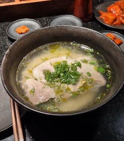 이곳의 대표 메뉴이자 방송의 핵심 메뉴. 맑고 깔끔한 국물에 얇고 부드러운 돼지고기를 담아낸 스타일로, 일반적인 진한 돼지국밥과는 다른 매력을 보여준다. 토렴 방식으로 제공된다는 후기도 있어 밥과 국물의 조화가 자연스럽다.