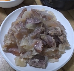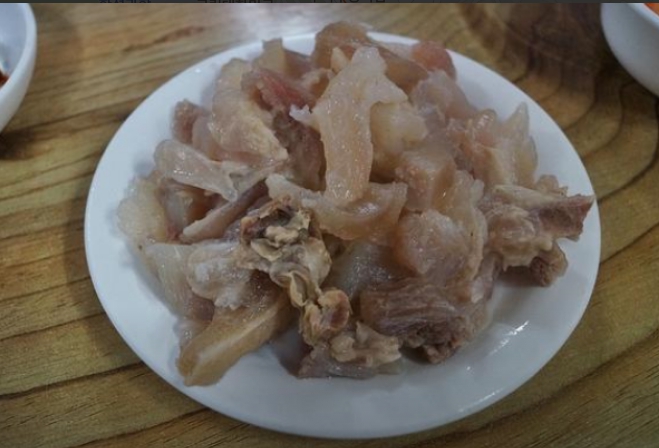 부드럽고 잡내 없이 삶아낸 고기로, 도가니탕과 함께 곁들이기 좋은 메뉴. 담백한 맛과 쫄깃한 식감이 특징이다.