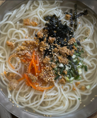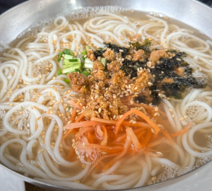 이곳의 시그니처 메뉴. 성게가 넉넉하게 올라가 고소한 바다 풍미가 진하게 느껴지며, 따뜻하고 부드러운 국물과 국수가 조화를 이루는 제주 향토 음식이다.