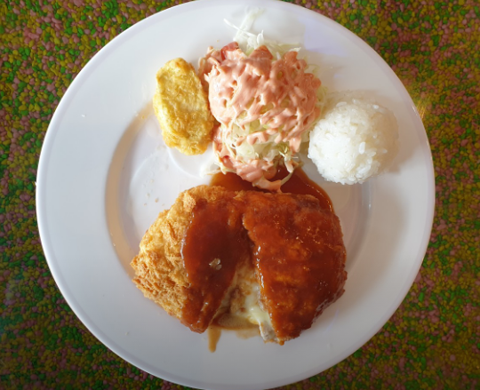 수제 돈가스에 치즈를 더한 메뉴. 집밥 스타일 식당이지만 돈가스 메뉴 만족도도 높은 편으로 보인다.