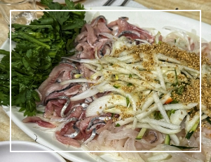 쫀득한 식감과 깊은 풍미가 특징인 메뉴로, 채소와 함께 곁들여 먹으면 비린 맛 없이 깔끔하게 즐길 수 있다. 사계절 내내 즐길 수 있도록 제공되는 점도 장점이다.