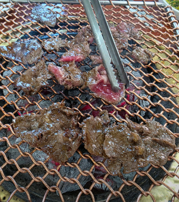 불고기와 함께 즐기기 좋은 메뉴로, 숯불에 구워 고소한 식감과 풍미를 살린 구이다.