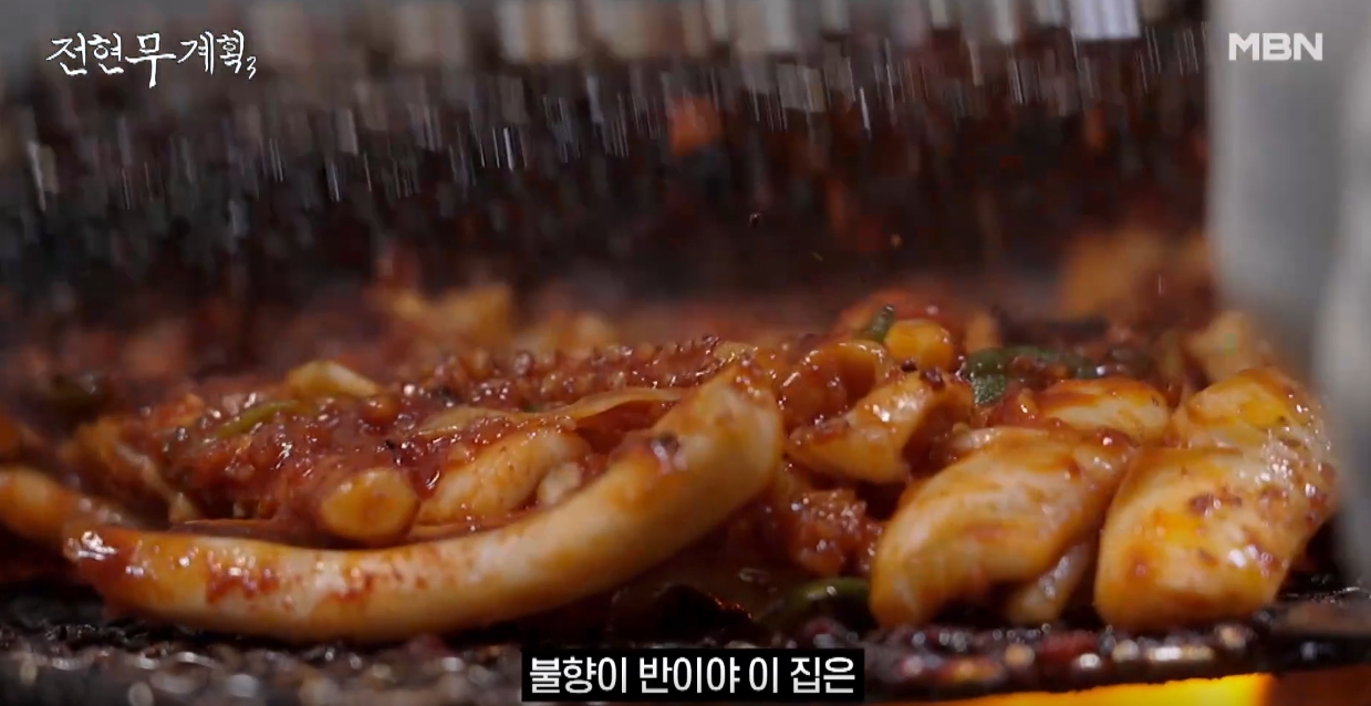 직화 불판 위에서 치익 소리를 내며 익어가는 빨간 양념의 오징어와 닭불고기. 매콤한 향과 불맛이 동시에 퍼지자 “동공이 확장된다”, “직화 향이 미쳤다”는 반응이 이어졌고, 맵부심 있는 출연진과 맵찔이의 극명한 온도 차도 웃음을 더했습니다.