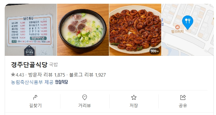 경북 경주시 충효녹지길에 위치한 경주단골식당은 국밥과 불고기 메뉴를 함께 즐길 수 있는 지역 대표 식당입니다. 농림축산식품부가 선정한 안심식당으로, 깔끔한 운영과 안정적인 맛 덕분에 관광객과 현지 단골 모두에게 인기가 높습니다.