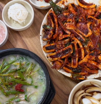 이곳의 시그니처는 단연 오징어불고기와 닭불고기입니다. 센 불에서 빠르게 구워내는 직화 방식으로 불향을 제대로 입혀내며, 첫 입부터 끝까지 중독성 있는 매운맛이 특징입니다.