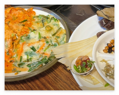 여러 가지 전을 한 번에 맛볼 수 있는 구성으로, 술과 함께 즐기기 좋은 메뉴다.